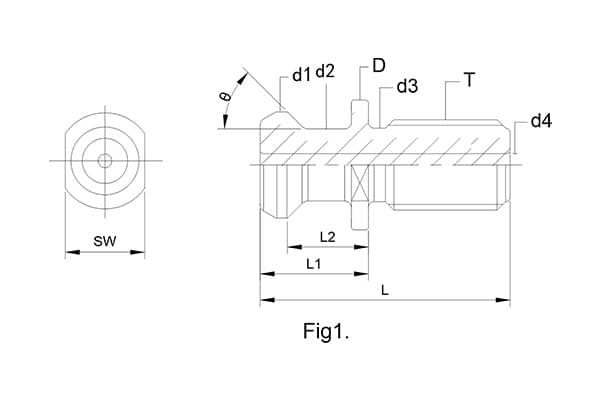 | D | D1 | D2 | D3 | D4 | L | L1 | L2 | SW | T-UNG | FIG | θ | ||