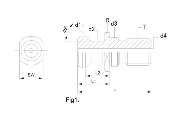 | D | D1 | D2 | D3 | D4 | L | L1 | L2 | SW | T-UNG | FIG | θ | ||