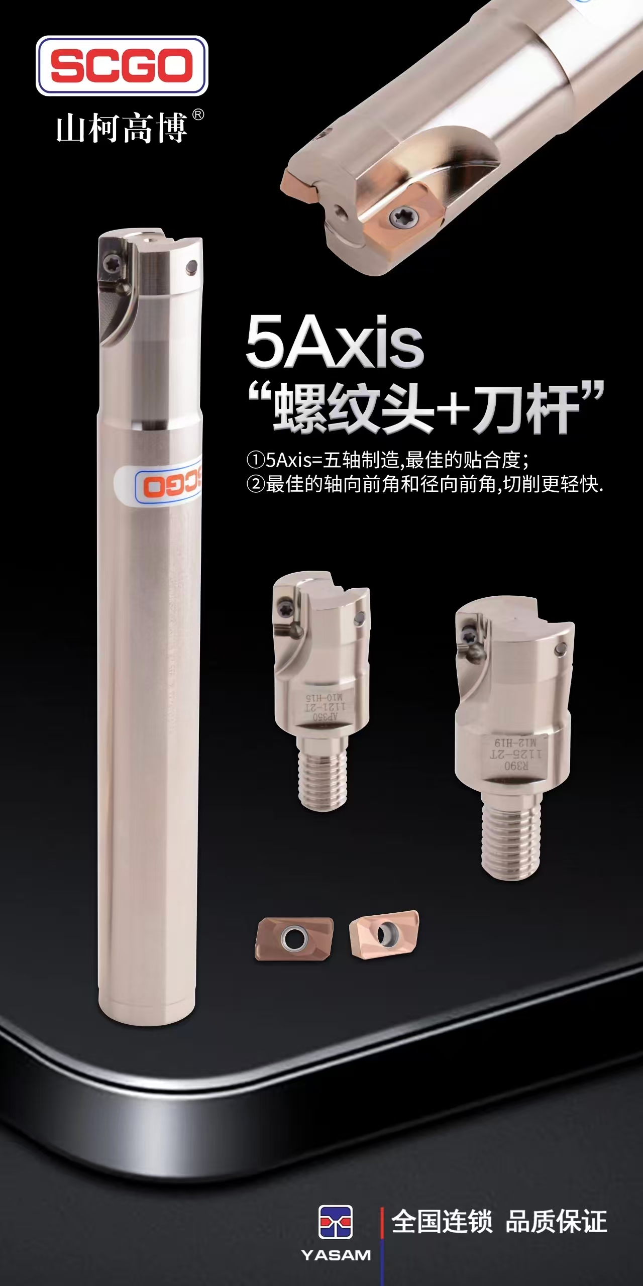 【概要描述】山柯高数控刀具有限公司_SE防尘刀柄,SE标准刀柄,SE高速刀柄,SE深腔刀柄,SE雕铣机刀柄,东莞市山柯高数控刀具有限公司是SE夹持系统的原创者,成立于2007年9月,拥有多项知识产品产权,秉承“振兴中国数控刀具行业,服务全球中小客户”的企业使命,专注于数控刀具的研发与销售,以全新创业理念和“耀欣模式”发展企业,为实现“让机器更高效”的企业愿景正不懈努力。5Axis“螺纹头+刀杆”①5Axis=五轴制造,最佳的贴合度;②最佳的轴白前角和径向前角,切削更轻快